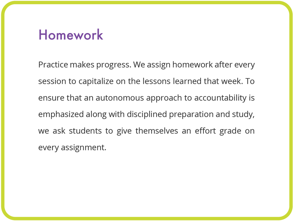 We approach test prep from a child-centric perspective, and are sure to cater to the needs of the human we’re working with, not only the student. We don’t try to make a child’s life fit into a test prep program; we make sure that test prep fits comfortably into a child’s life.